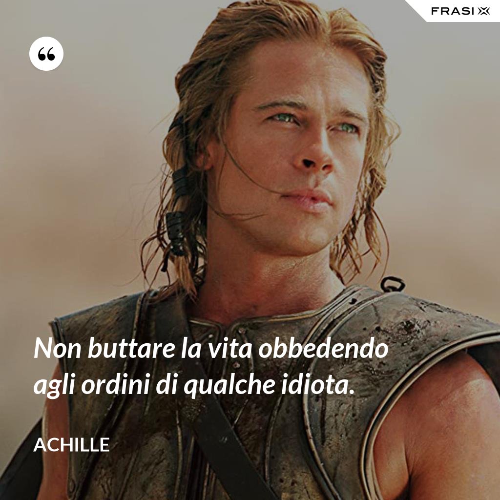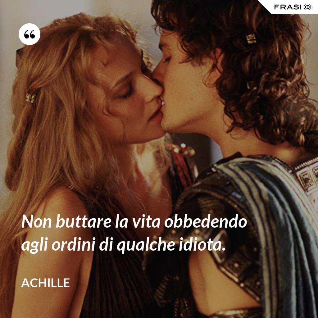Mirmidoni, miei fratelli di spada. Cinquanta di voi valgono più di un intero esercito. Nessuno dimentichi mai la nostra forza: siamo leoni! Sapete cosa c'è, ad aspettarvi, oltre quella spiaggia?! L'immortalità! Andate, è vostra!