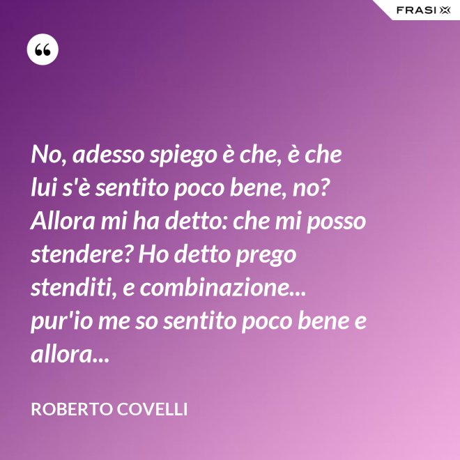 No, adesso spiego è che, è che lui s'è sentito poco bene, no? Allora mi ha detto: che mi posso stendere? Ho detto prego stenditi, e combinazione... pur'io me so sentito poco bene e allora...