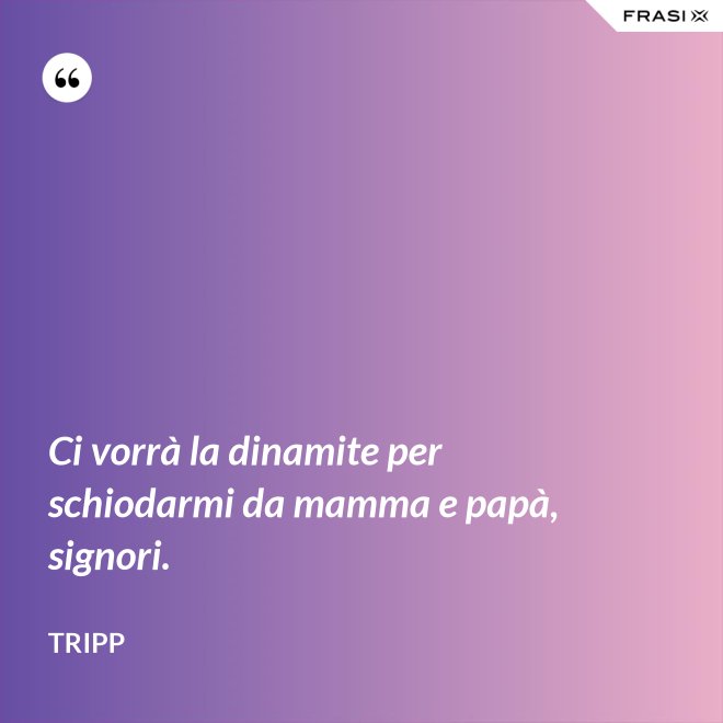 Ci vorrà la dinamite per schiodarmi da mamma e papà, signori.