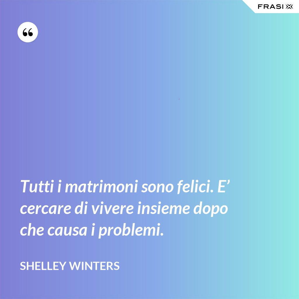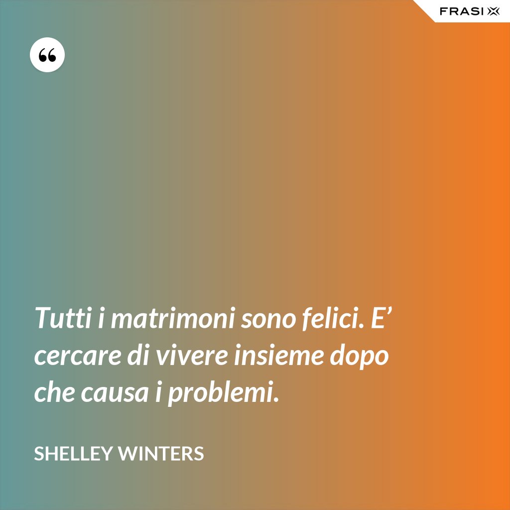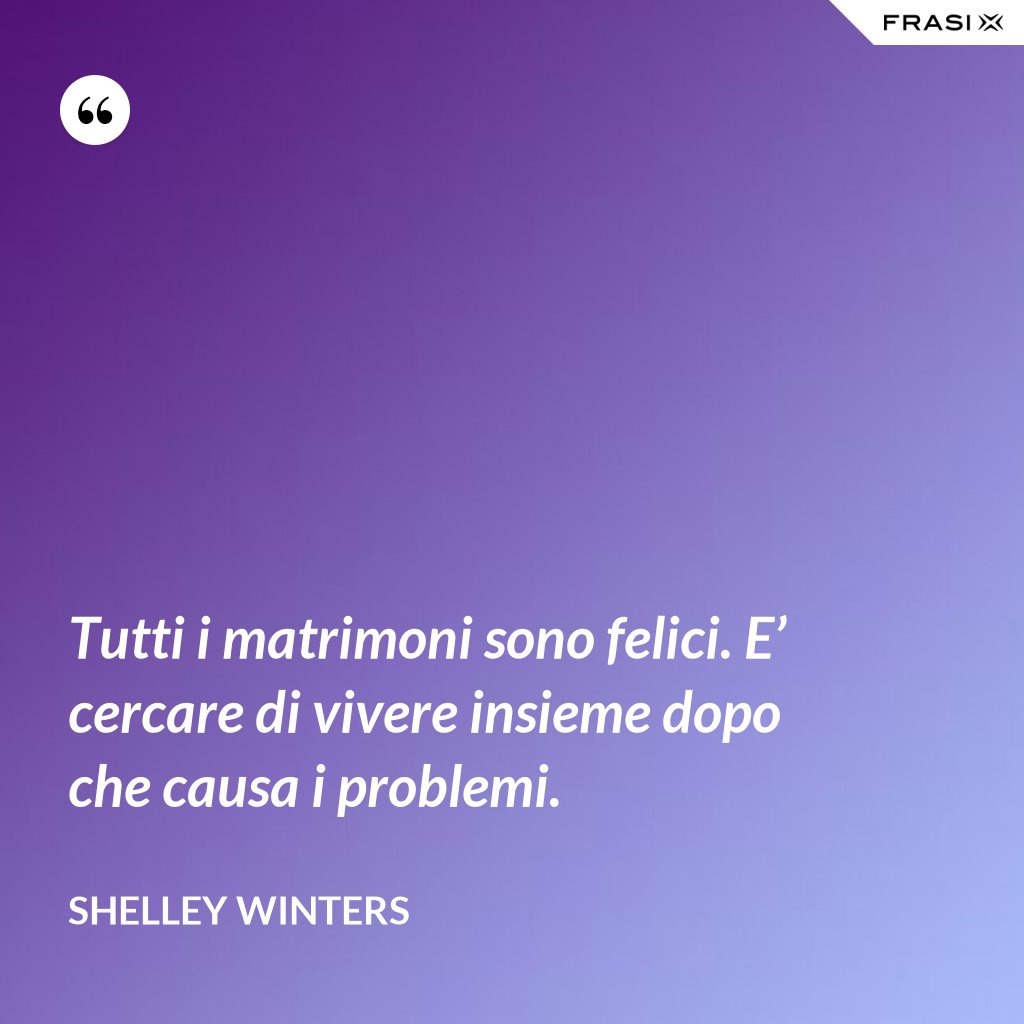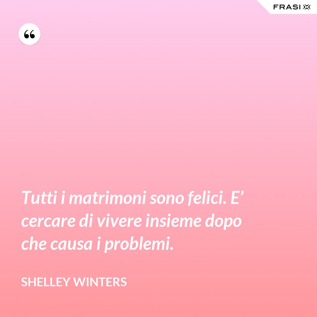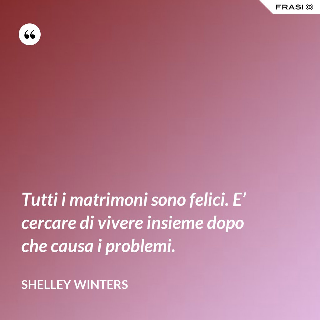 Tutti i matrimoni sono felici. E’ cercare di vivere insieme dopo che causa i problemi.