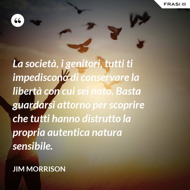 La società, i genitori, tutti ti impediscono di conservare la libertà con cui sei nato. Basta guardarsi attorno per scoprire che tutti hanno distrutto la propria autentica natura sensibile.