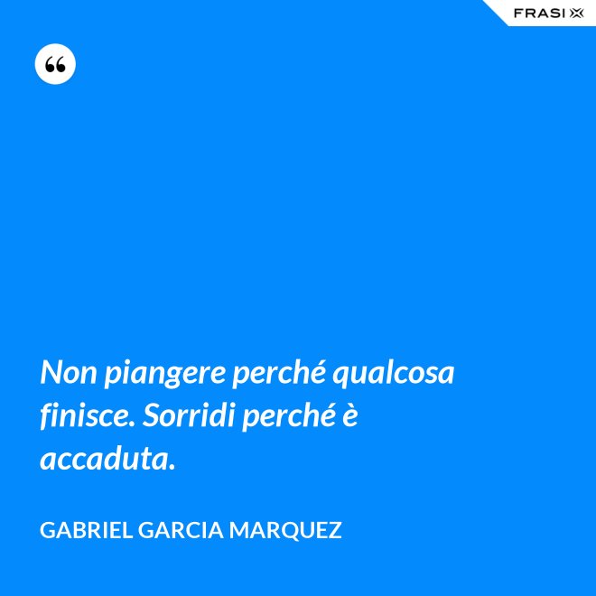 Non piangere perché qualcosa finisce. Sorridi perché è accaduta.