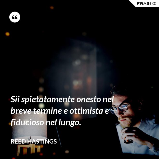 Sii spietatamente onesto nel breve termine e ottimista e fiducioso nel lungo.